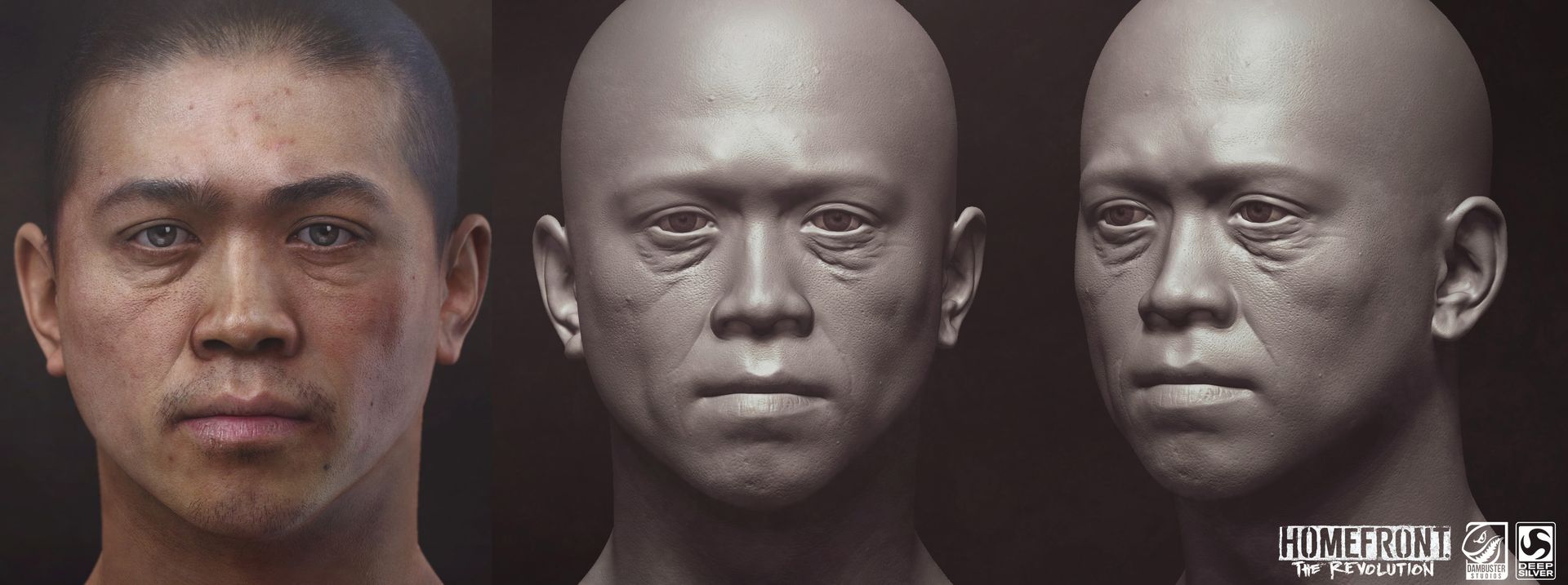 2015 - Various heads I created for Homefront: The Revolution. They were based on rough scan data, which I cleaned up and enhanced with additional details and facial features. Afterwards, I created the lowpoly versions and transferred the textures from the highpoly models.