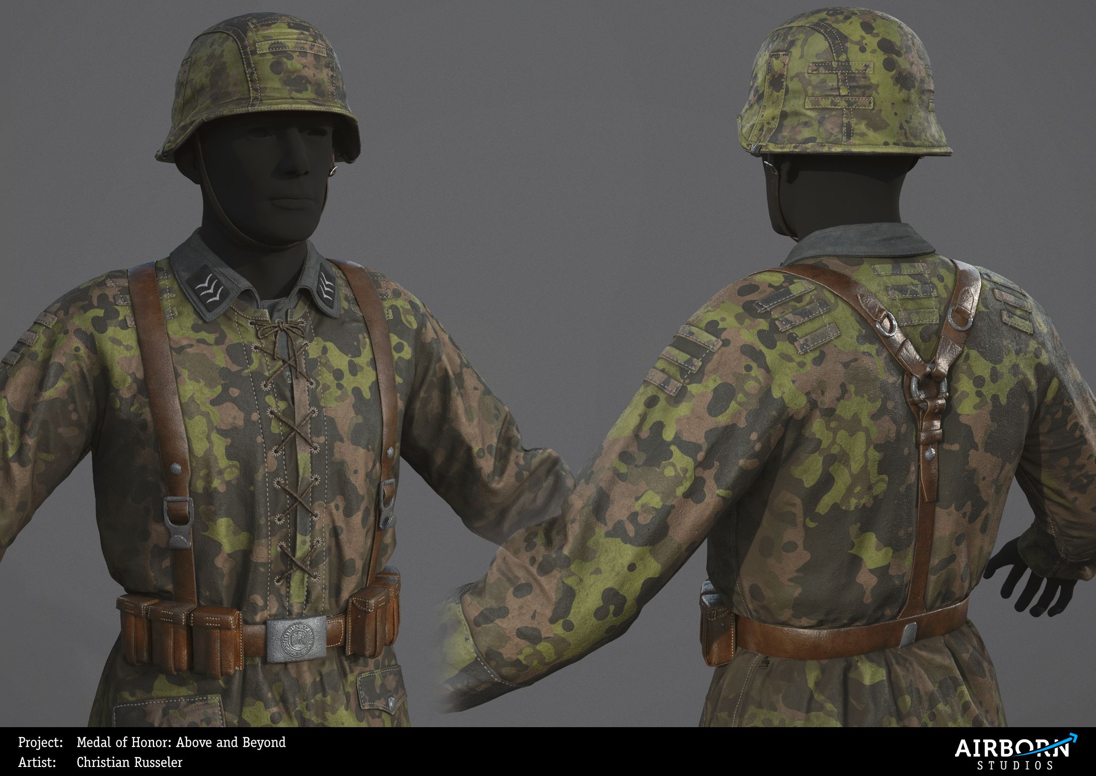 2017 - Created soldier outfits for Medal of Honor: Above and Beyond, based on historical reference photos. Responsible for the full production pipeline, including highpoly modeling, lowpoly modeling, UVs, and texturing.