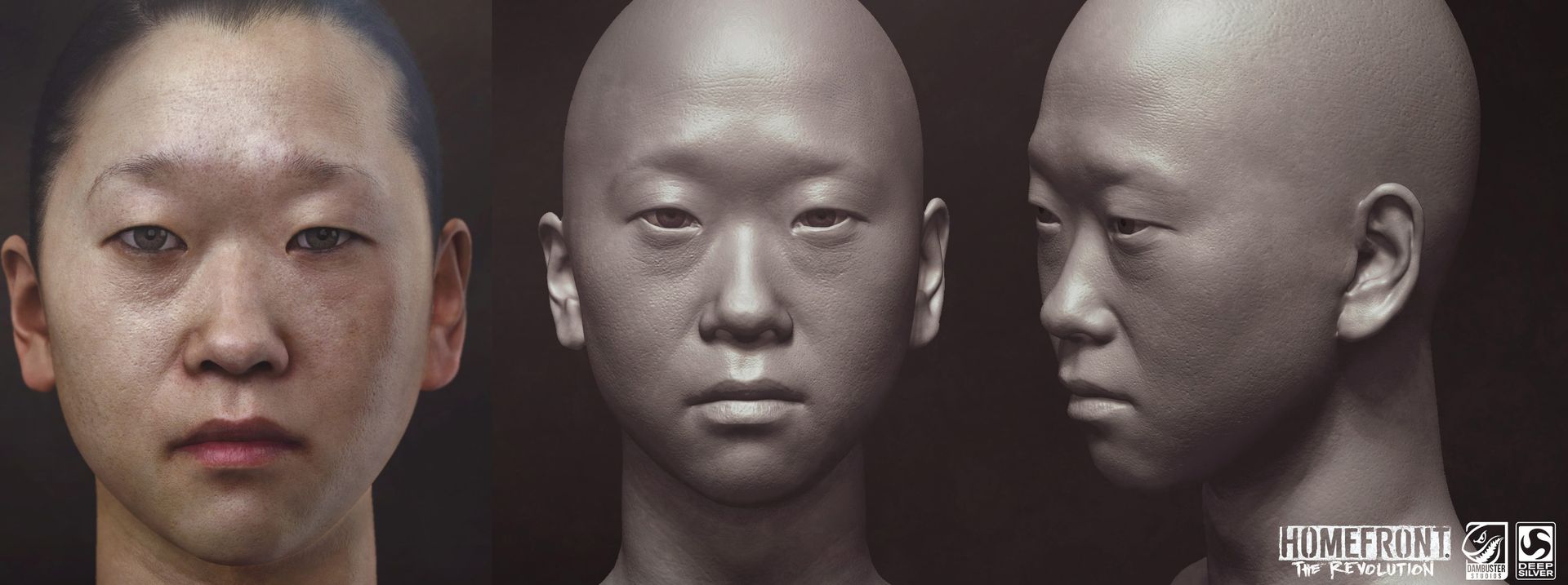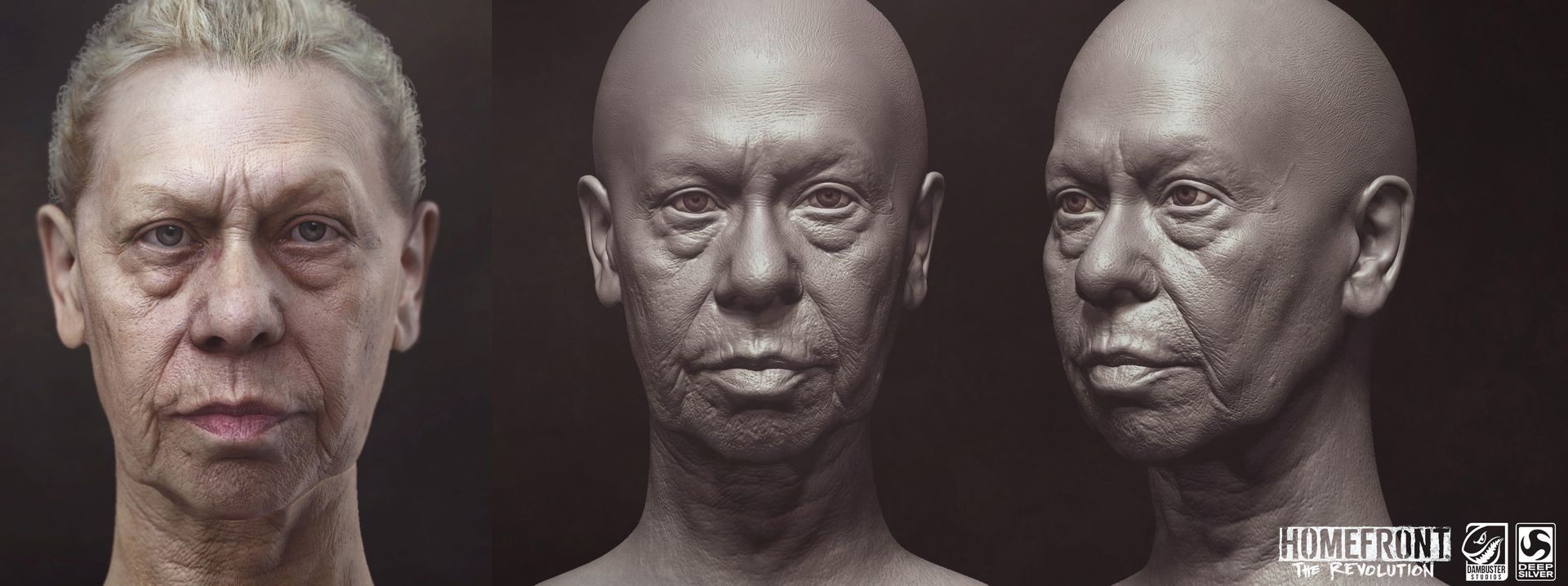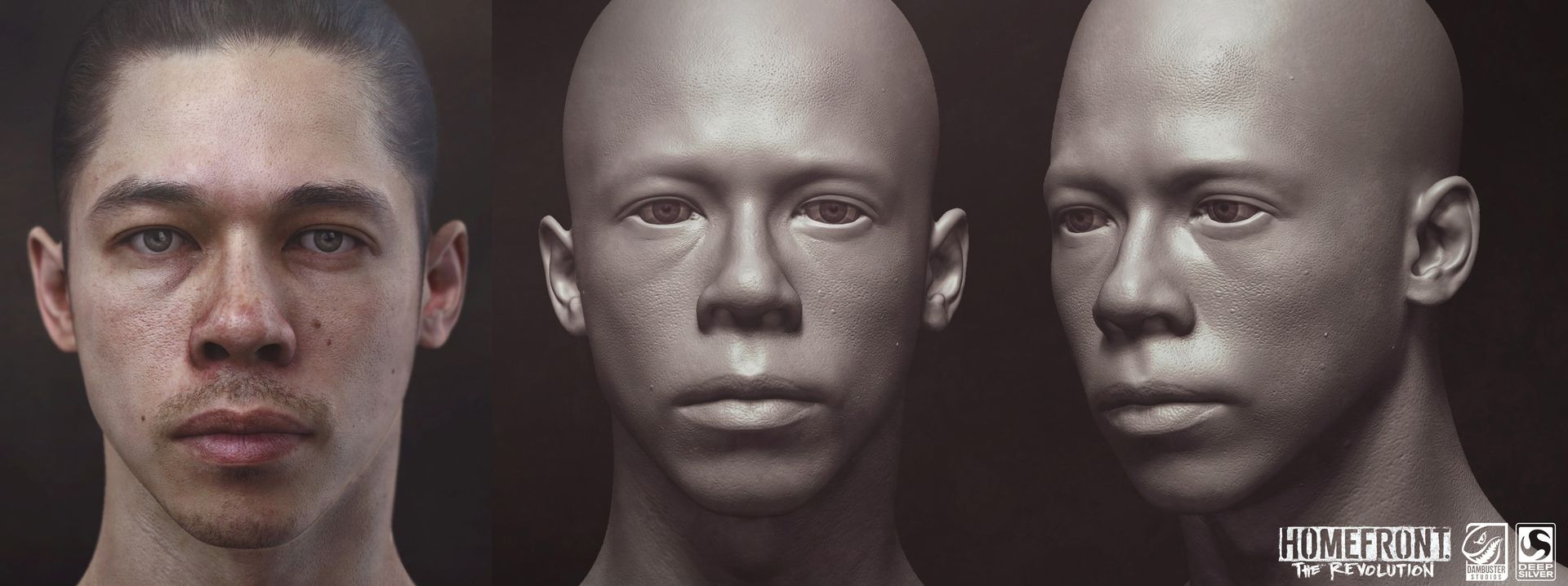 2015 - Various heads I created for Homefront: The Revolution. They were based on rough scan data, which I cleaned up and enhanced with additional details and facial features. Afterwards, I created the lowpoly versions and transferred the textures from the highpoly models.