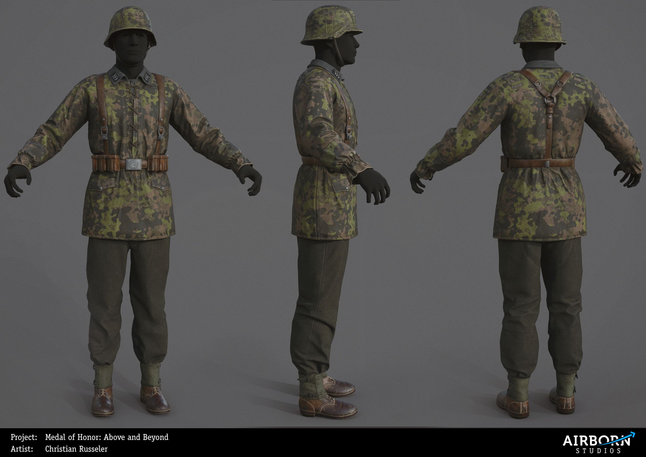 2017 - Created soldier outfits for Medal of Honor: Above and Beyond, based on historical reference photos. Responsible for the full production pipeline, including highpoly modeling, lowpoly modeling, UVs, and texturing.