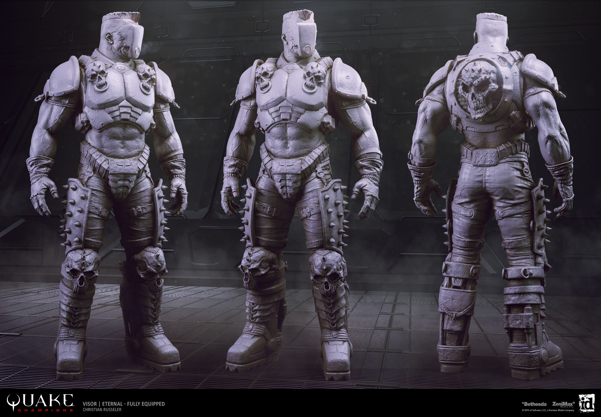I had the opportunity to create several characters for Quake Champions. The relatively simple concept art gave me the freedom to make many design decisions independently while maintaining the overall style of the game. Each character was also built with modular components to support Quake Champions’ variation system.
